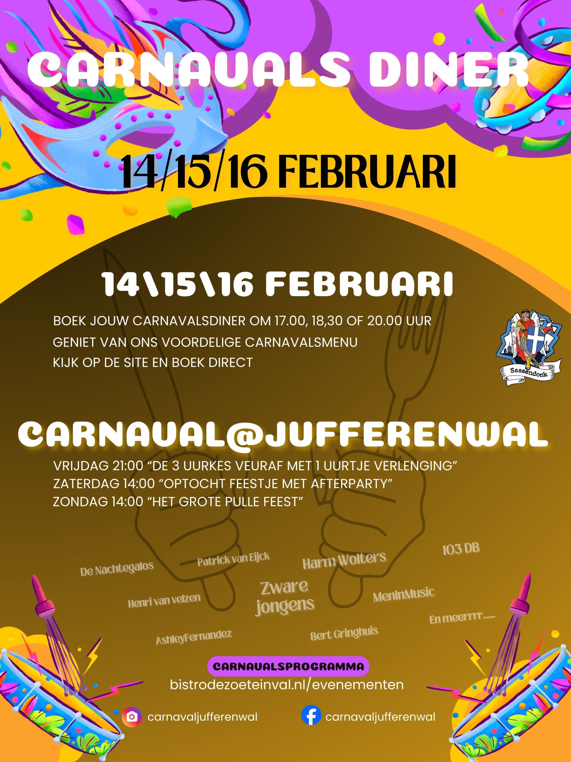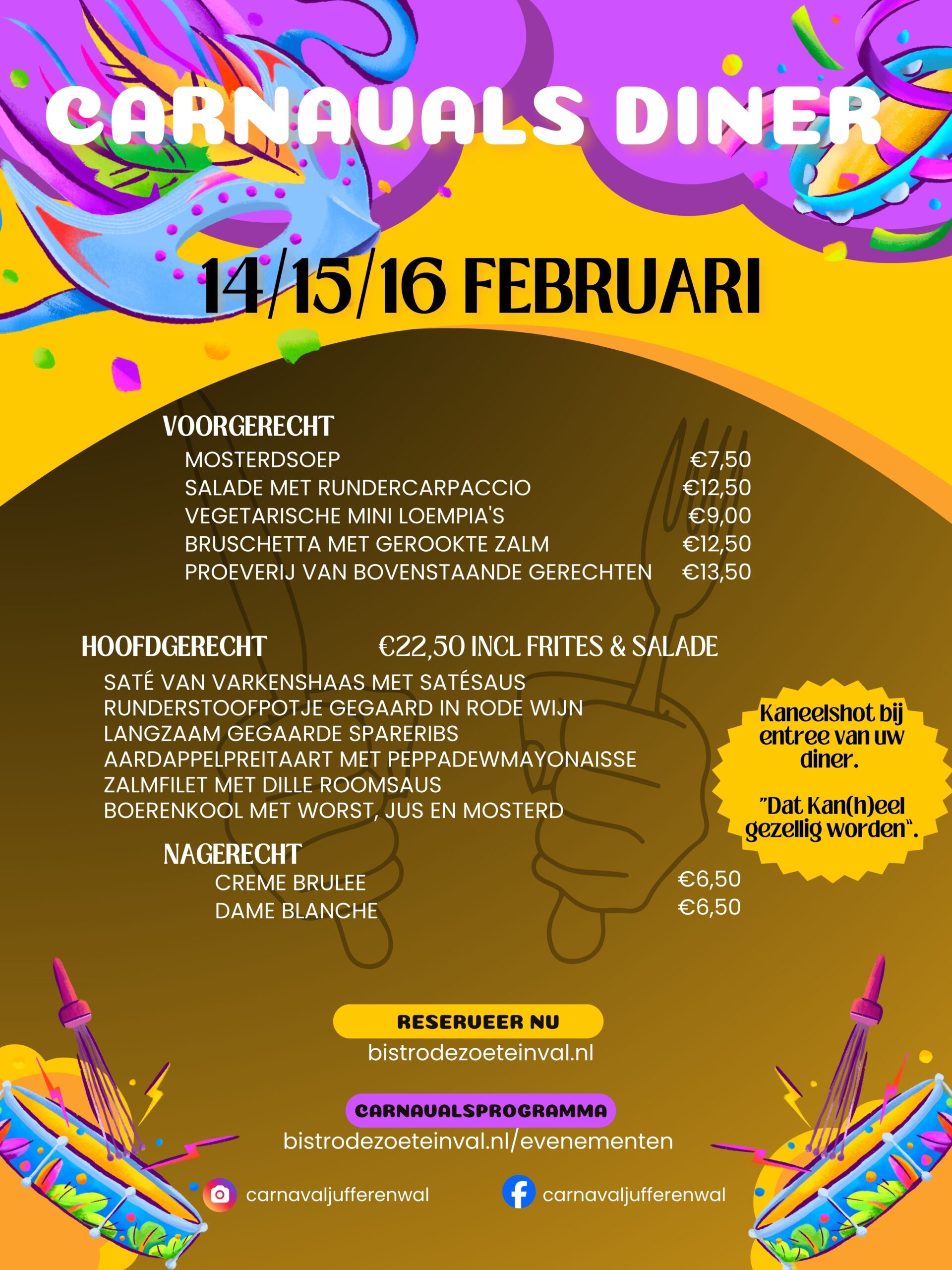 Za/zo/ma: Carnavalsdiner bij de Zoete Inval (reserveren aan te raden)
