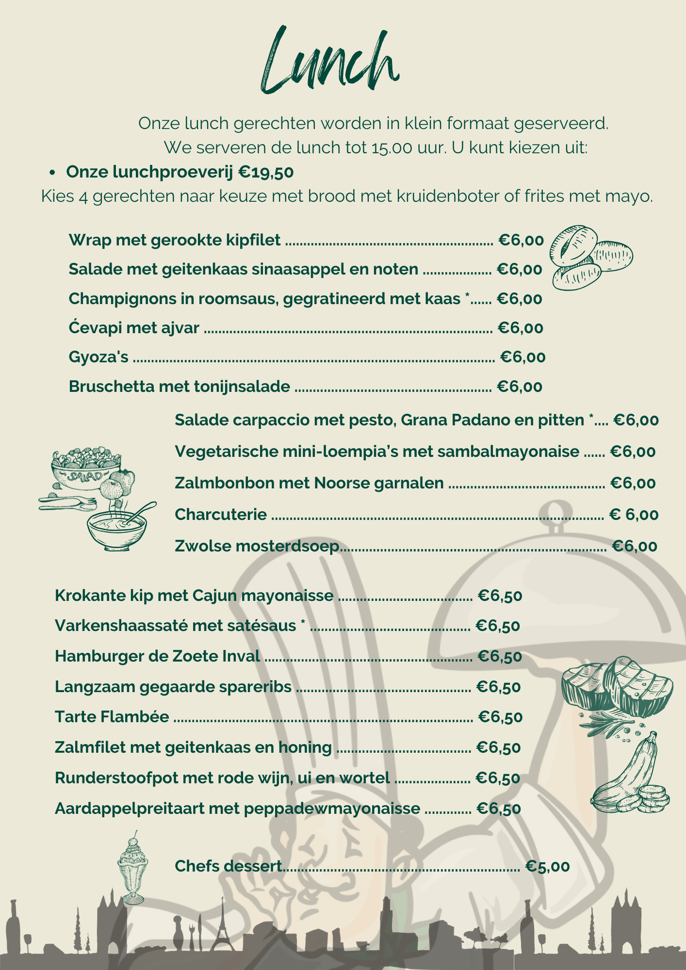 Kom gezellig lunchen of borrelen bij Bistro de Zoete Inval, onder de Peperbus en in het centrum van Zwolle.
